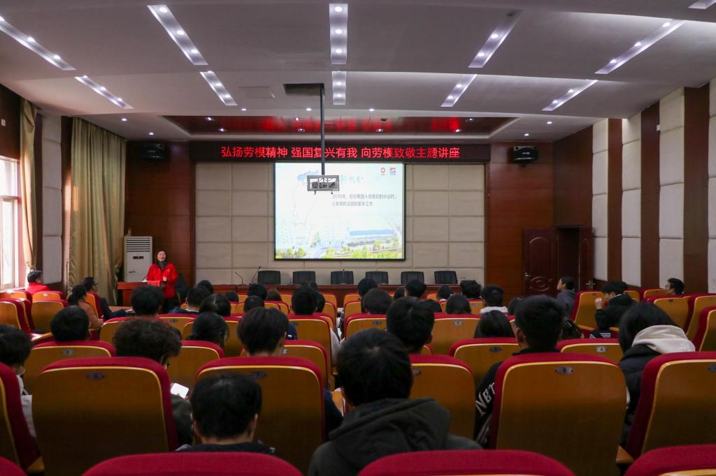 本网讯(机械工程学院) 为弘扬劳模精神、劳动精神、工匠精神,激励青年学子砥砺奋进,11月18日下午,机械工程学院在十里校区2号学术厅成功举办劳模进校园专题讲座。活动特邀中国建材集团所属巨石集团九江钙业有限公司技术骨干、全国劳动模范赵小梅同志担任主讲,为现场师生带来了一场感人至深、催人奋进的精神盛宴。