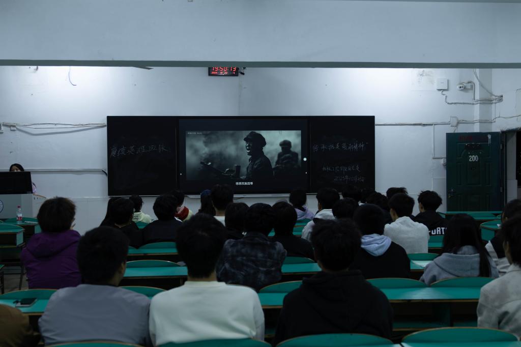 活动在庄严的氛围中拉开帷幕。主持人首先介绍了抗美援朝纪念日的由来及其历史意义,引导同学们回顾那段烽火连天的岁月,感悟志愿军将士保家卫国的英勇壮举。随后,通过精心制作的PPT专题讲解,从“历史背景与战役脉络”“英雄人物与动人故事”“精神内涵与时代价值”三个维度,结合珍贵的历史图片与英烈书信,生动再现了志愿军以弱胜强、不畏牺牲的光辉历程。黄继光、邱少云等英雄的事迹深深打动了在场的每一位同学。在观看纪录片《冰血长津湖》片段后,同学们踊跃分享了自己的感悟与思考。大家纷纷表示,要珍惜来之不易的和平,将英雄精神内化于心、外化于行,转化为刻苦学习、服务社会的实际行动。