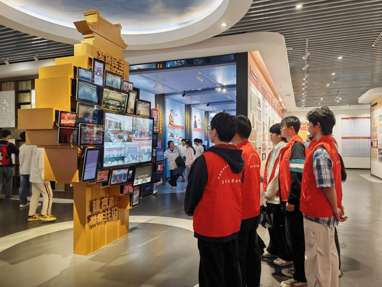 在九江市博物馆,同学们跟随讲解员的脚步,系统领略九江悠久的历史脉络。青铜器物斑驳中诉说着岁月沧桑,民俗珍品静默间传递着先民智慧——一件件文物如同时光的信使,将浔阳大地的文明印记生动呈现在大家眼前。步入九江市政协文史馆,“协商建国”“九派风云”等展区以翔实的史料、生动的图片,全景式展现了人民政协的发展历程与九江波澜壮阔的建设成就。同学们驻足细看,认真聆听,在历史与现实的交汇中深切感受到协商民主的独特魅力与时代价值。行走其间,同学们不仅用眼观察,更用心体悟。从传统文化到红色记忆,从地方变迁到国家大政,大家在沉浸式的学习氛围中完成了一次思想与精神的洗礼。传统文化与红色文化在此交融,历史认知与使命意识在此升华。